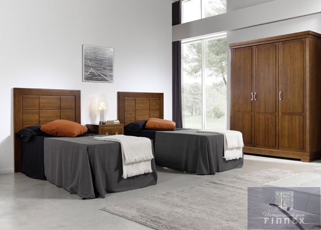 Мебель выполнена из массива сосны, производство Joype (Испания).Тонировка дерева — орех, мед, полисандр, белый (патина)в комплекте можно заказать шкаф платяной, тумбы прикроватные, комоды, зеркала.Пять размеров кровати по ширине спального места.