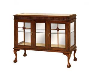 Витрина придаст дому особый стиль. Витрина занимает совсем немного места, но обладает большой декоративностью. Фабрика «Satin Furniture» представляет мебель для жилых помещений выполненную в классическом стиле. Ассортимент включает в себя мебель для сидения, столовых и гостиных, кабинеты и множество аксессуаров. Данная продукция полностью выполнена из массива гивеи-махагонь (красного дерева ). Все элементы мебели обрабатываются вручную. Удачно подобран цвет лакокрасочного покрытия орех («New Antique»). Покрасочные материалы были разработаны бельгийскими  специалистами и поставляются непосредственно из Европы. Мебель поставляется из Индонезии в собранном виде. Для соединения деталей в производстве используются винтовые и шкантовые (шкант-чепики) соединения, также при сборки мелких частей – клеевые соединения.
